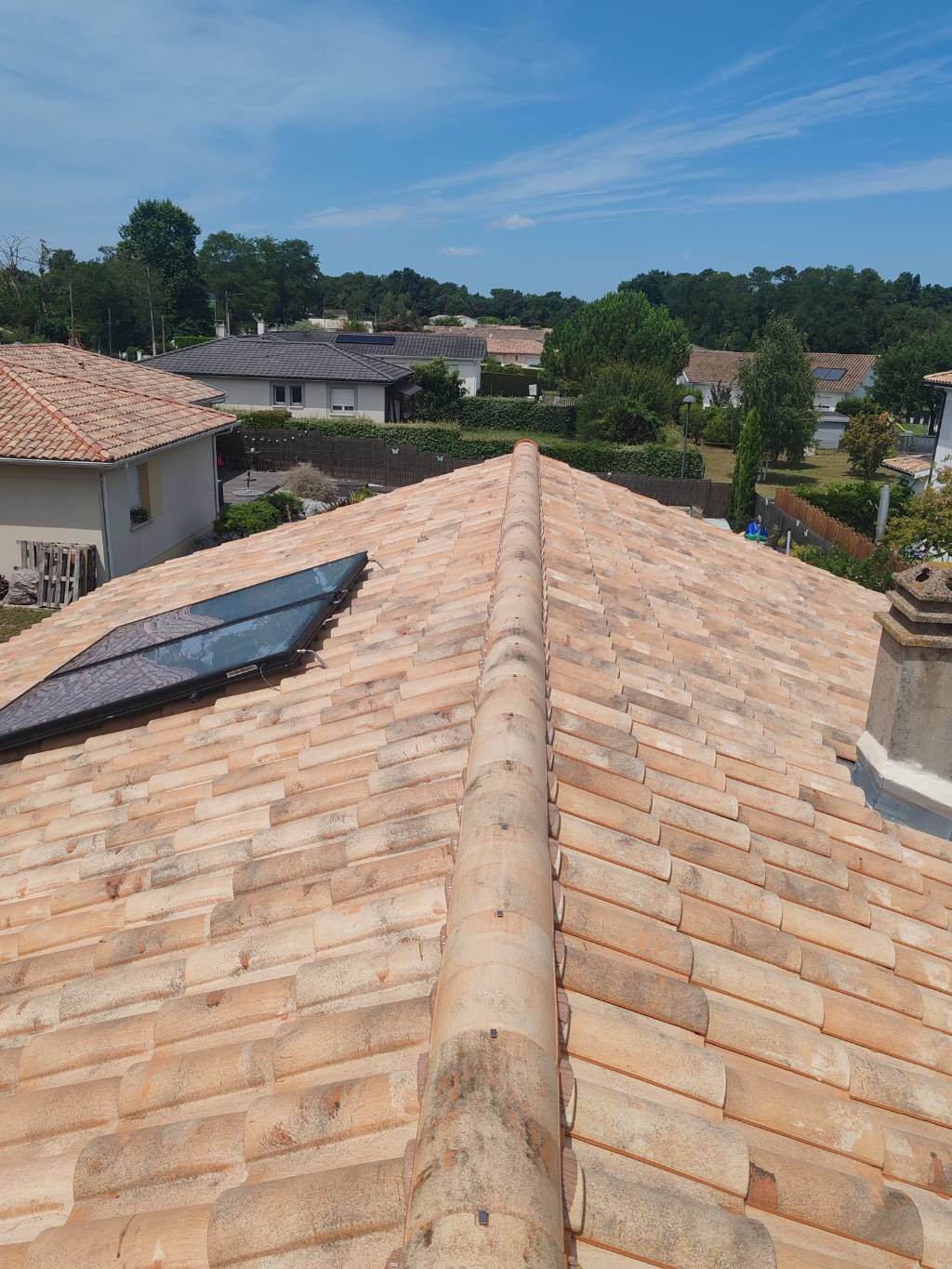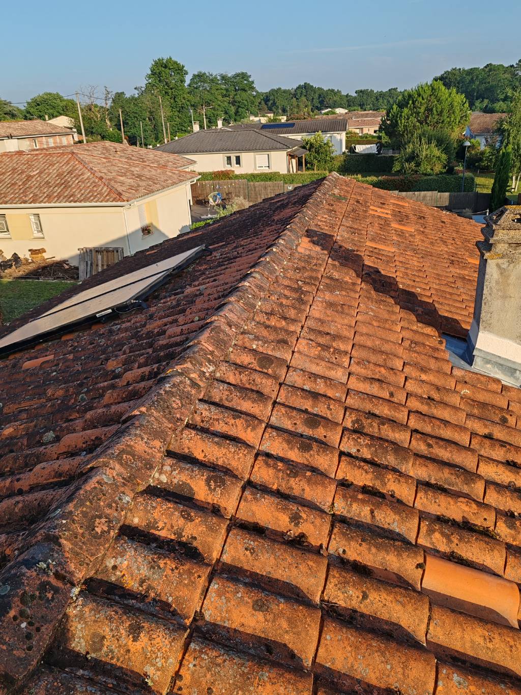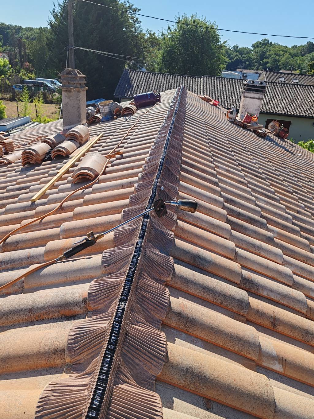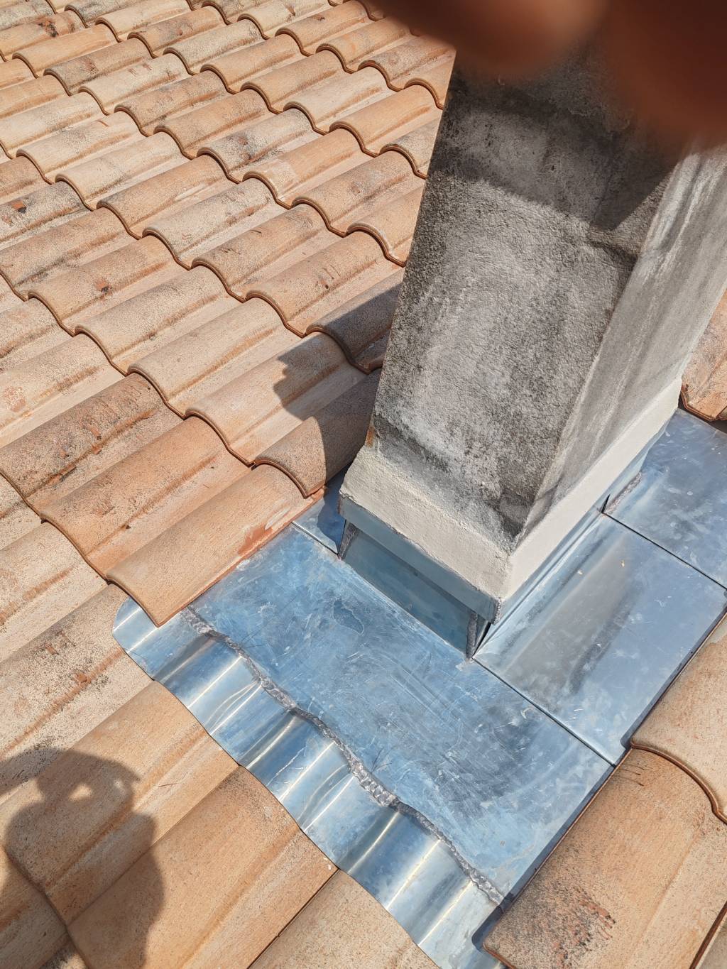 Nous avons solutionné la fuite dans un premier temps (entourage de cheminée) avec des mesures conservatoires en attendant le début du chantier qui nous a permis de faire une réfection complète, la tuile existante étant en fin de vie (Gélive).