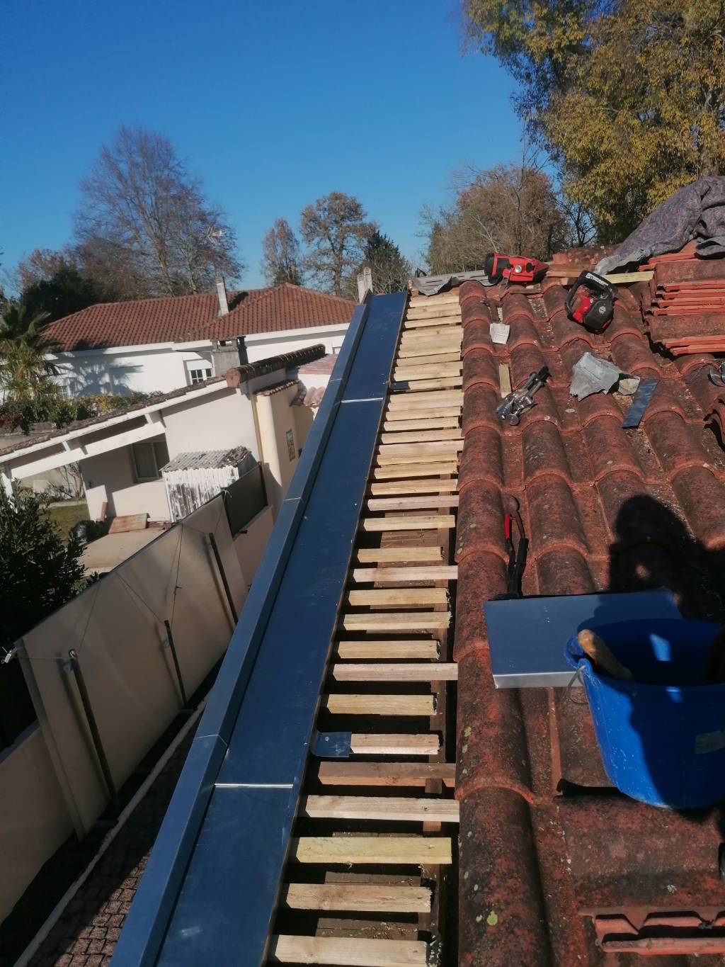Dépose de tuiles de rive et création d’un chéneau de rive en zinc