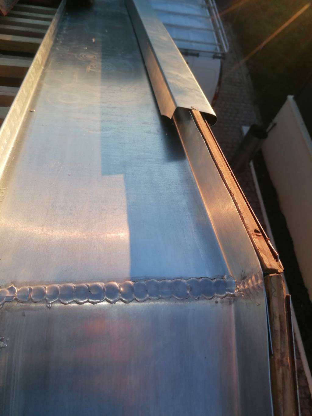 Nous avons donc trouvé un compromis en réalisant un chéneau de rive en zinc, habillé de main courante en zinc également.
