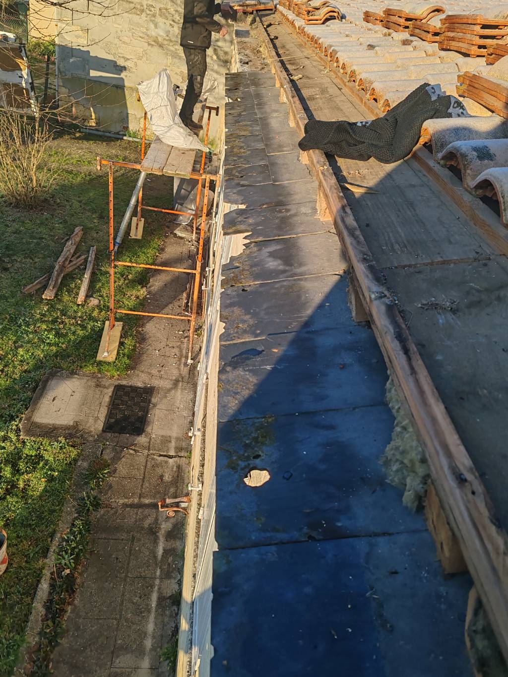 L'entablement en ardoise ayant subi de gros dégâts nous avons opté pour un entablement zinc + gouttière pour être tranquille dans le temps.