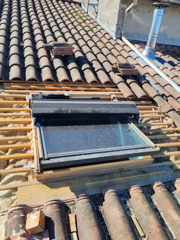 Les 2 entourages Velux d'origine étaient mal posés, nous sommes donc intervenus et nous avons préparé les supports afin d'accueillir notre zinguerie.